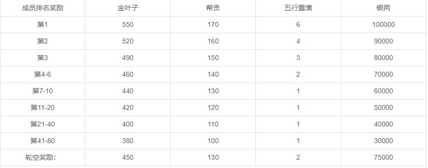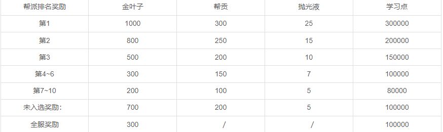 跨服帮派战奖励