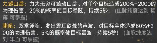 2、宠物血脉:宠物血脉分为本体血脉及其它血脉(山岳巨猿)其他血脉游戏后期会逐步开放更多