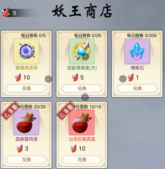 每日1小时刷新1次攻打妖王次数,每次打败妖王即可获取妖王积分,通过消耗积分兑换血脉材料