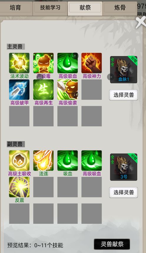 准备足够的宠物坯子进行献祭,后面就看自己运气了,献祭出满意的宠物后,要靠打书来选择自己宠物想要的技能即可。
