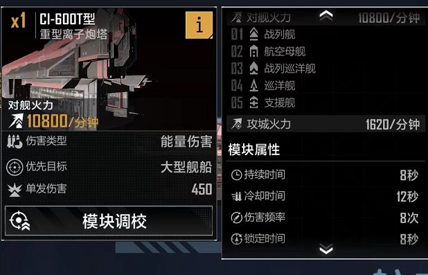这个模块目前还不好说孰好孰坏,因为能量炮虽然是有着自身的先天优势,但不知道是命中率低还是什么原因,打出来的伤害要比面板标注的低不少,而且直射武器只能按照站位顺序打,锁定时间长,存在较长的持续时间,都是摧毁小型舰船非常不利的因素,如果有条件的话个人建议还是选轨道炮稍微好一些,轨道炮1000的单发伤害打个前排还是绰绰有余的