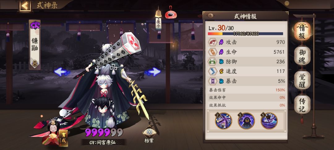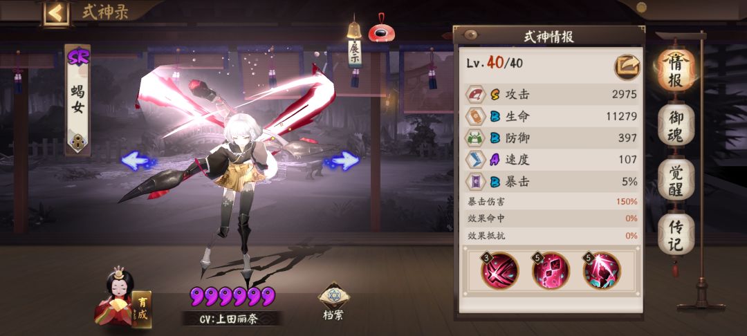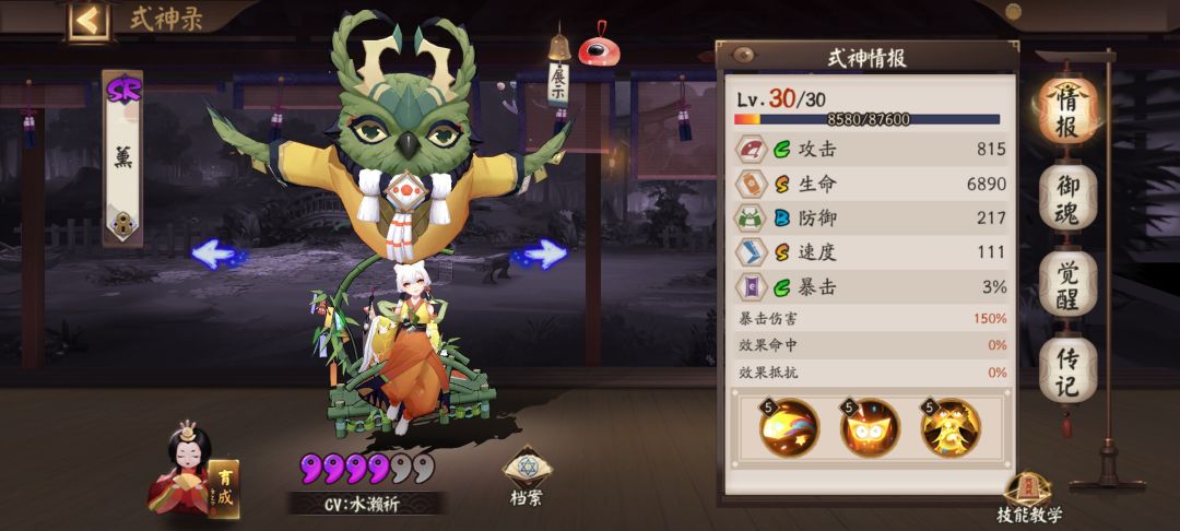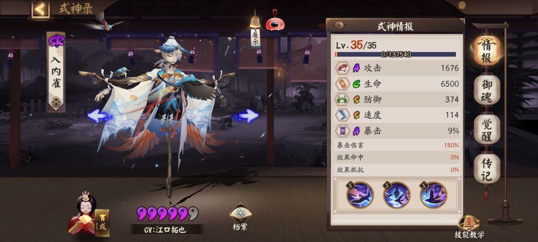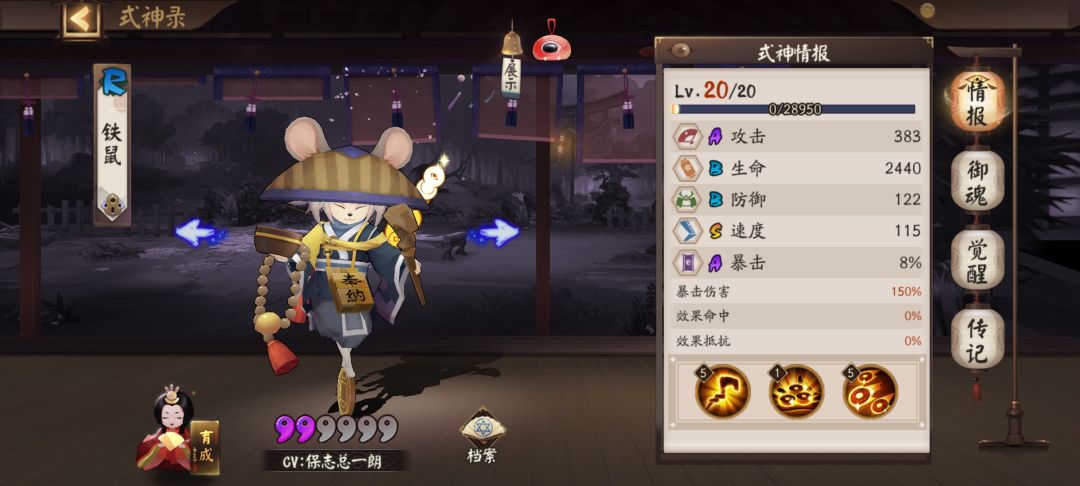 钱鼠是一个功能性辅助式神,不是必练,但是推荐拉一拉等级和技能,被动是在战斗获胜后获得的金币增加9%,可以说是聊胜于无,主要用到的是大招,大招是为敌方附加40%的易伤,注意,是易伤,不是减甲,这意味着可以和减甲同时附加,要知道阴阳师同倍率的增伤是不能同时附加的(不知道是不是这样),就像上面山兔和晴明。钱鼠的大招相当于是直接增加40%的伤害,也算是R卡一大增伤战神吧。等级四星就够用,只需要点满大招。