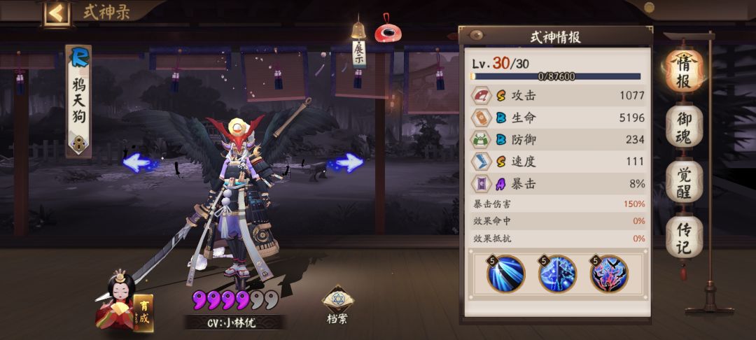 姑姑也是前期很好用的,但和小黑不同,大招升技能后是有一定形态变化的。被动自带30%协战,PVP甚至能塞进协战队,食灵鸦天狗姑姑,协战率高达60%-110%,相当哈人,鬼切看了都想哭,我就遇到过被姑姑一刀戳我6W血直接把我戳死的。