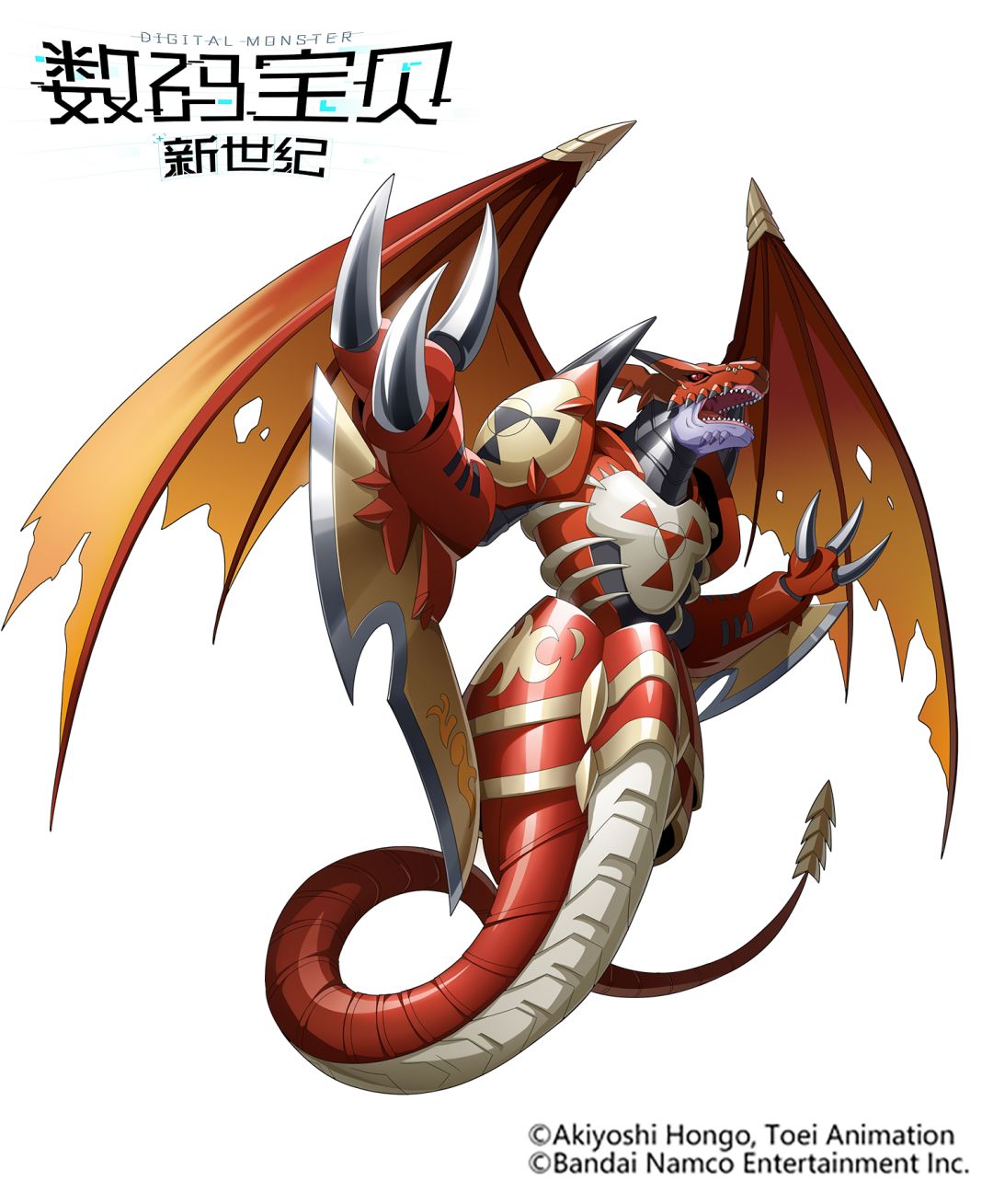 所有龙型数码宝贝中最凶残、最邪恶的数码宝贝。与青龙兽、神龙兽、圣龙兽并称四大龙数码宝贝,但性格与其他三位相比,凶恶程度迥然不同。是一种珍稀到不确定如今是否还存在的稀少种数码宝贝,它的存在本身就是一种“数码危机”,它的力量却被某种“力”封印着。然而,听说那股力量觉醒时,会对数码世界造成巨大的灾害。拥有由时之数码合金打造的躯体。有种说法称,灭世龙兽与混沌公爵兽是同一存在,看到其恐怖波动的人甚至觉得时它是黑暗骑士或者黑暗龙。通常技是被称为“地狱烈焰”的强大冲击波。奥义技是将所有物体化为灰烬的“灭世烈焰”。