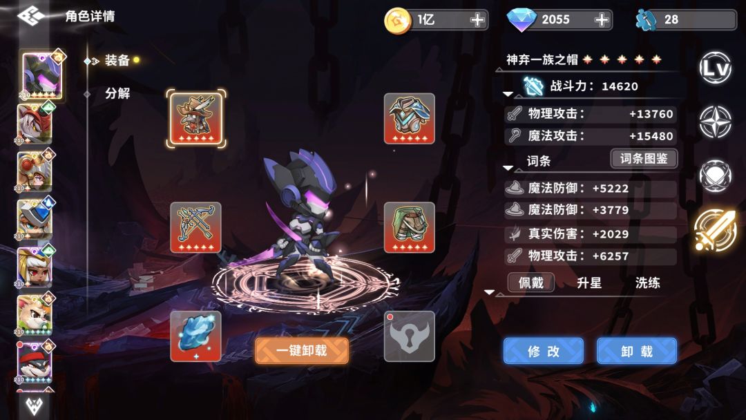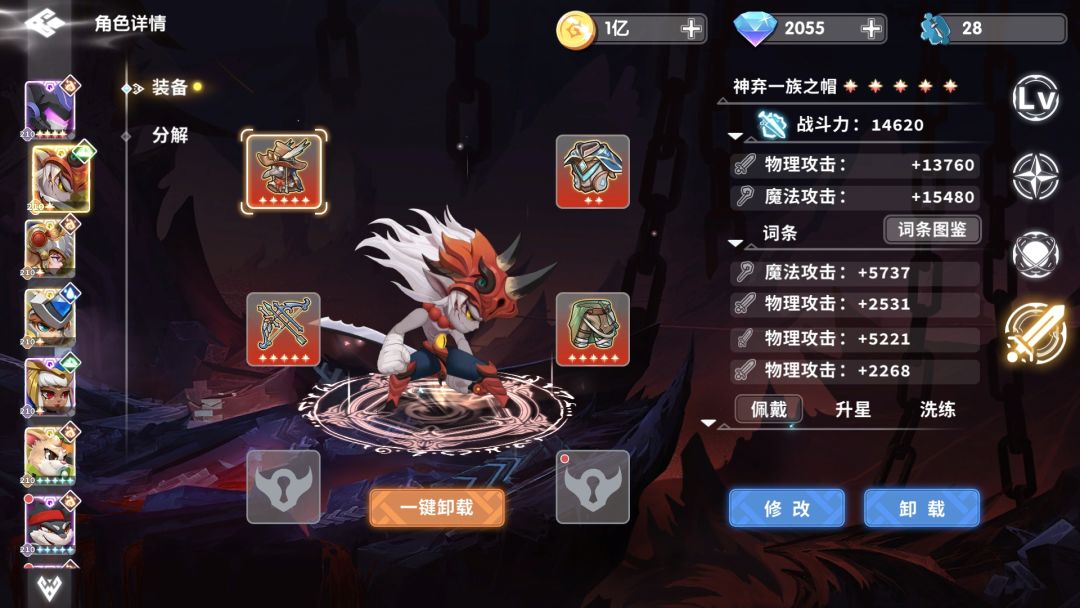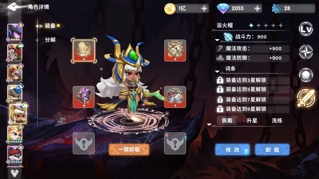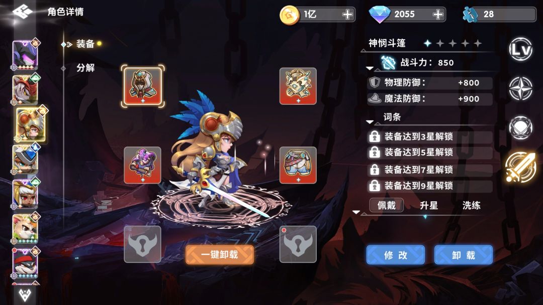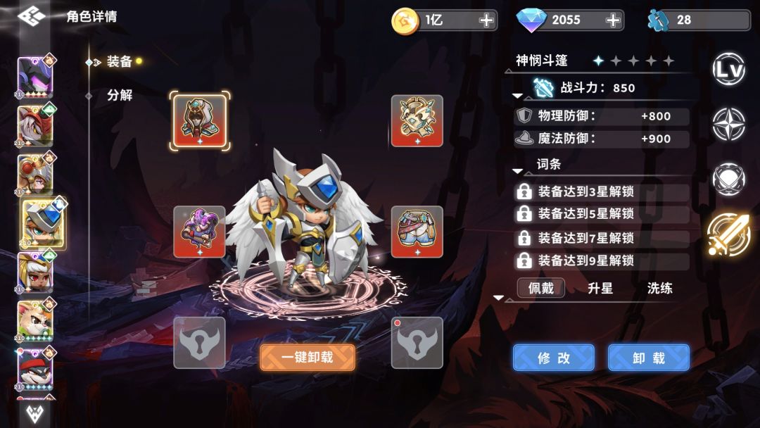 通关阵容如下,其实只要有两套10星的输出装就可以了,防御不行,输出来凑,只要打得够快,没有过不去的boss。
