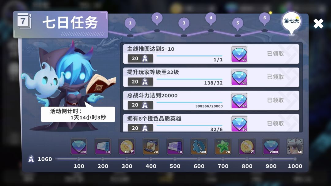 第7天把无尽之塔1000关也过了