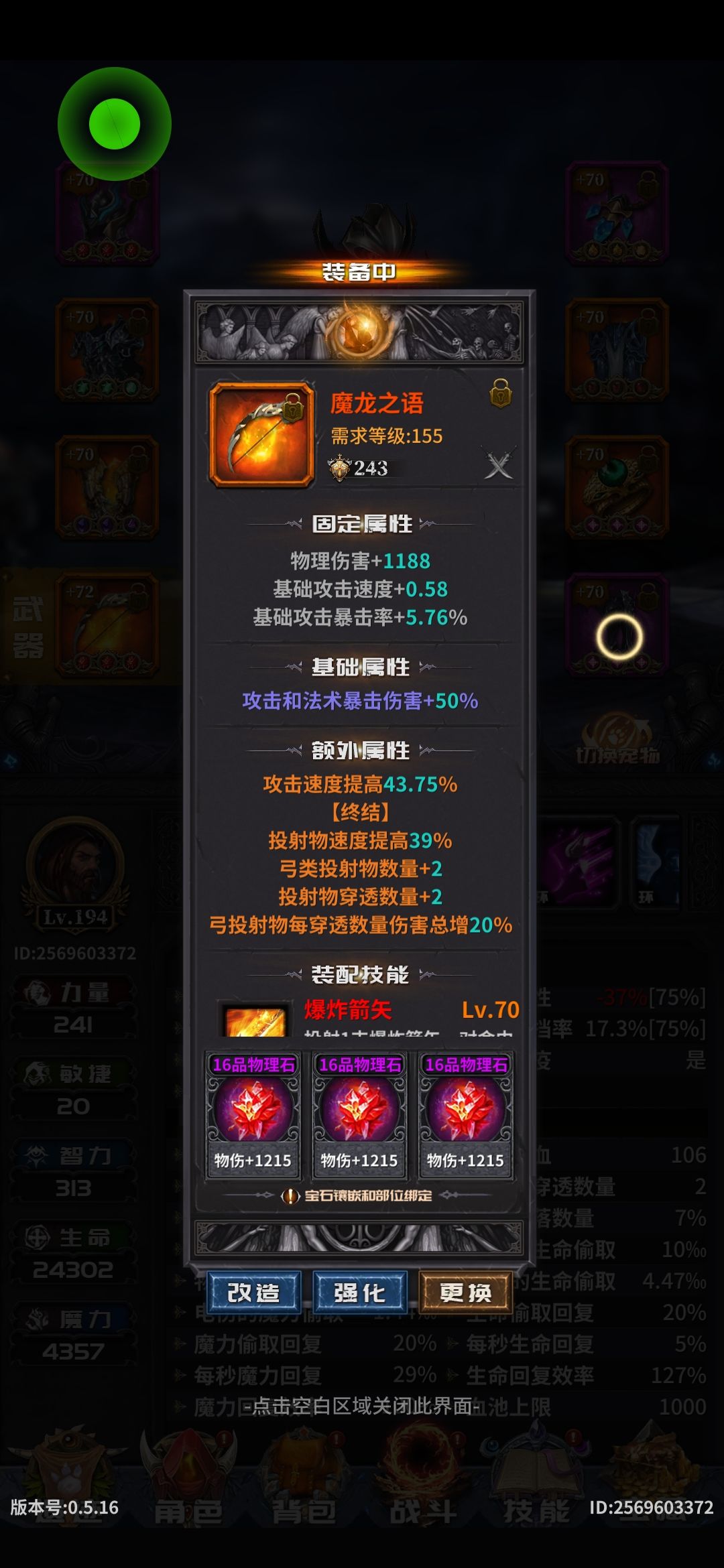 4、技能选择爆炸箭,物转可以根据自己喜好,可以转冰或者电,如果伤害不足可以把快速投射换成爆伤