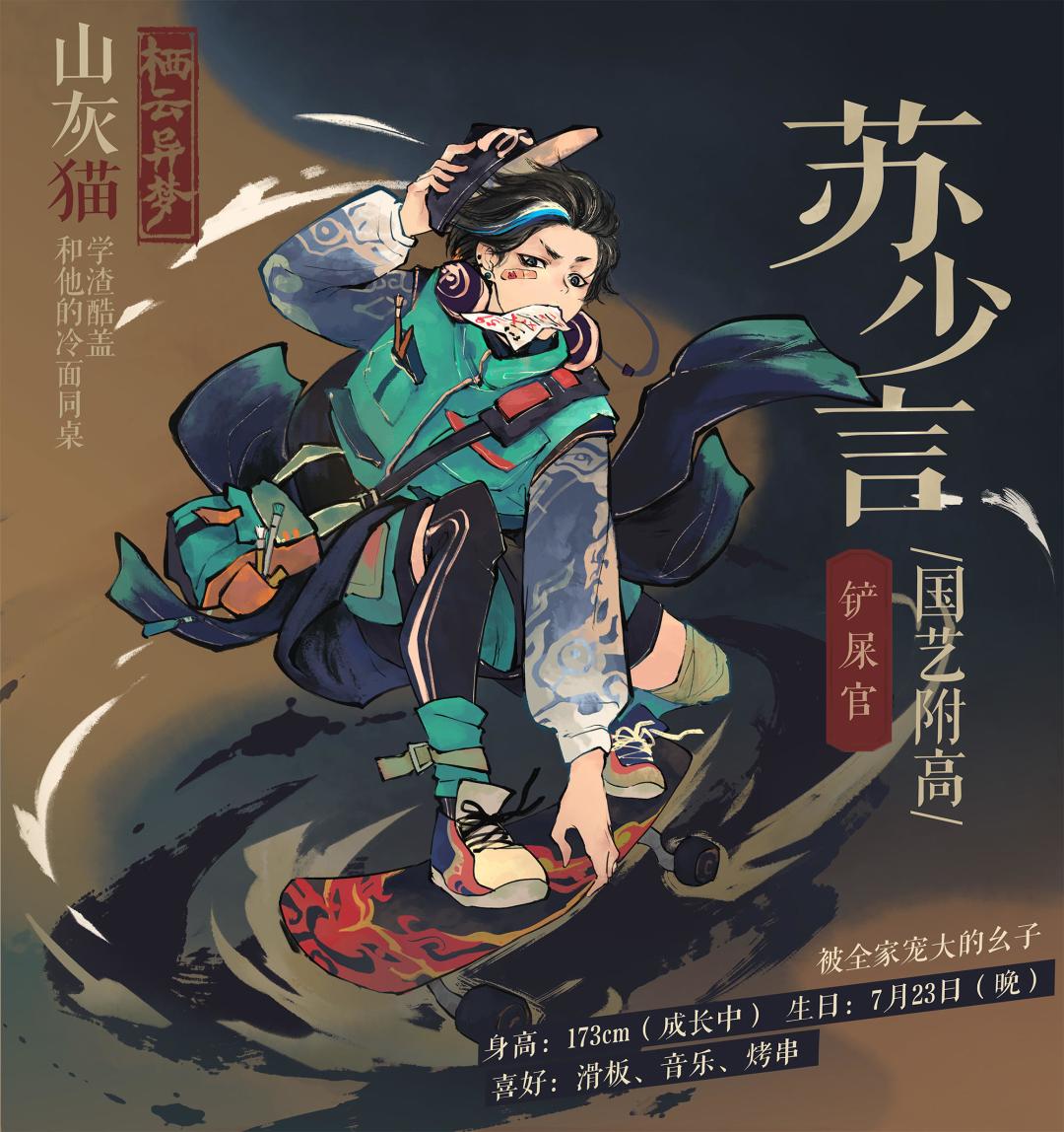 1,人设图,通关的大家都知道苏少言是猫奴,喜欢猫猫,而方哲的摩托车上就出现了一只可爱喵头,包包里出现一本字迹清晰的,如何养猫。