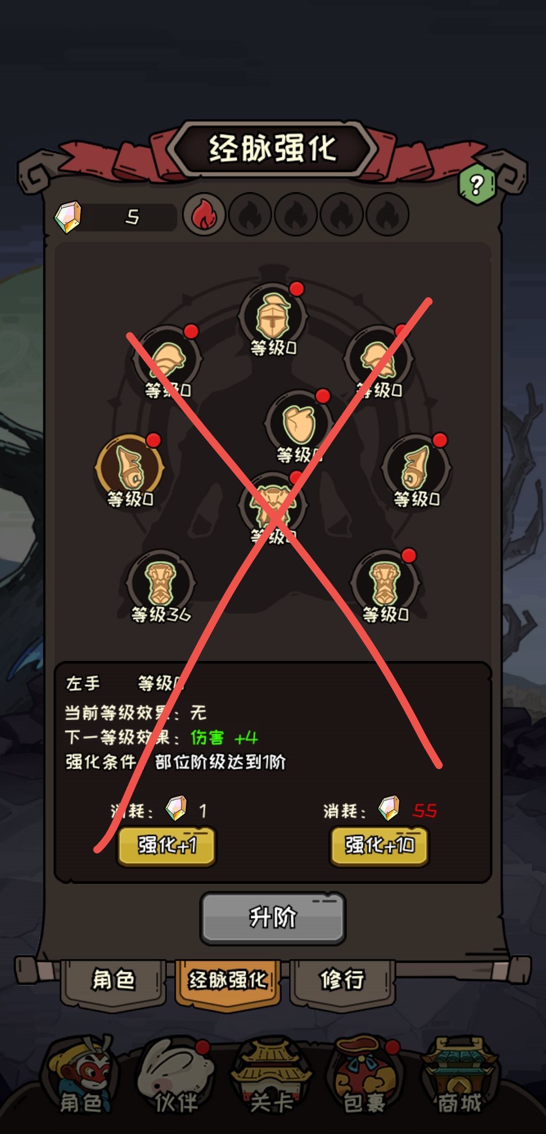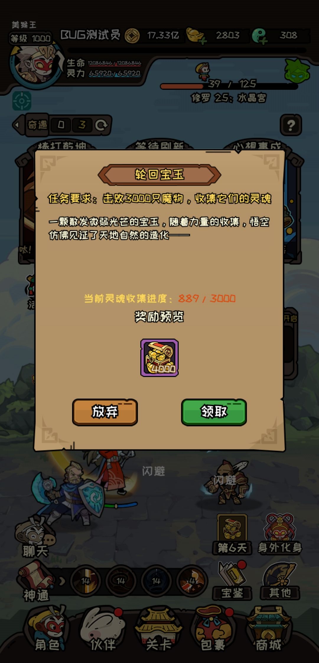 等级上,能能升级就尽快升级,岁月和金币瓶子可以省,经验瓶子不要吝惜。高等级意味着推关更快,金币和经验更多,资源滚是滚起来的。