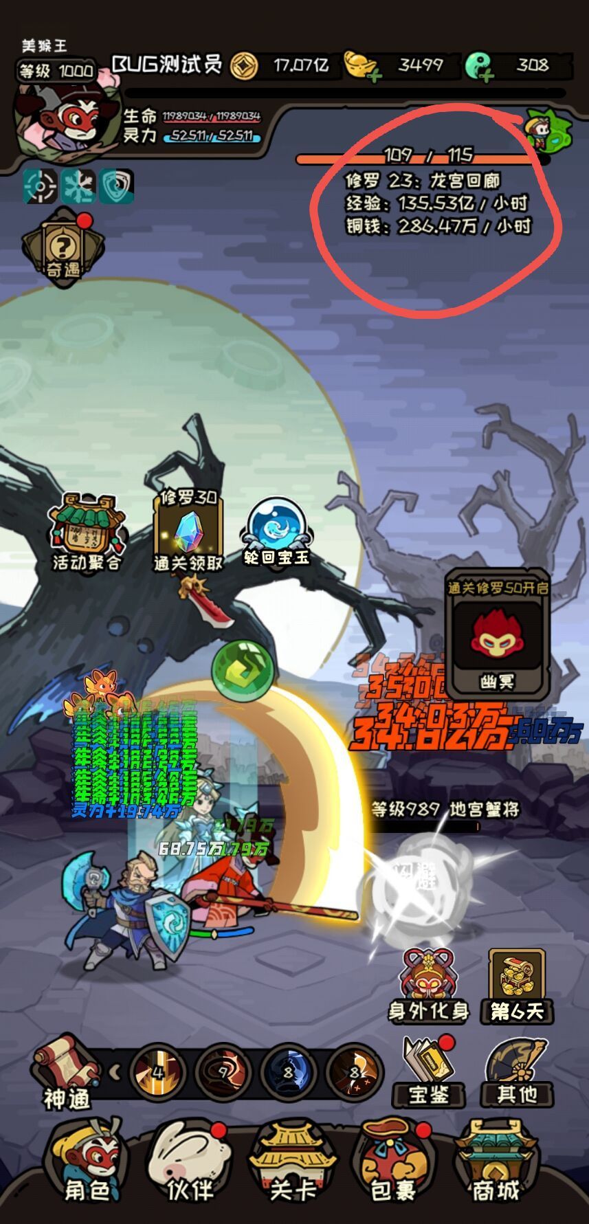 离线挂关也一个道理,可以配上金币装和灵宠效果更佳。