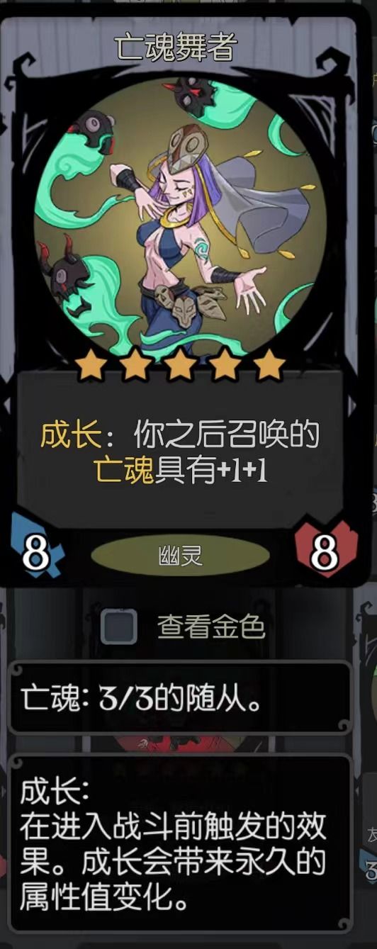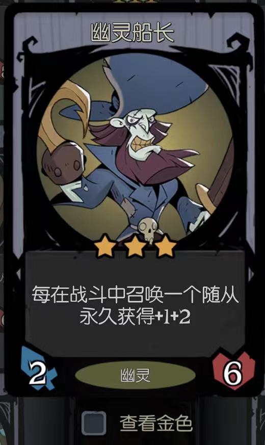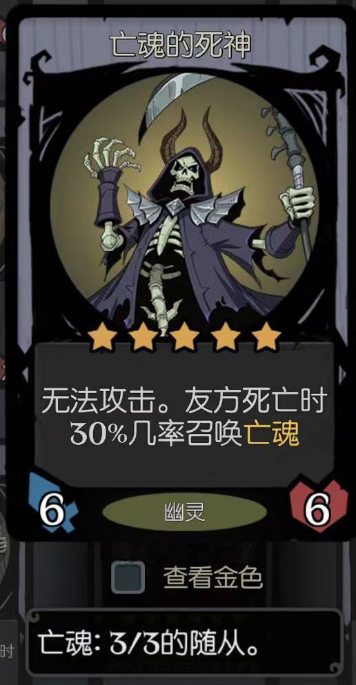 刷到必买,一直刷一直买,不管有没有钱,算是核心入场牌,给以后刷的亡魂+攻击和生命,真的好用。