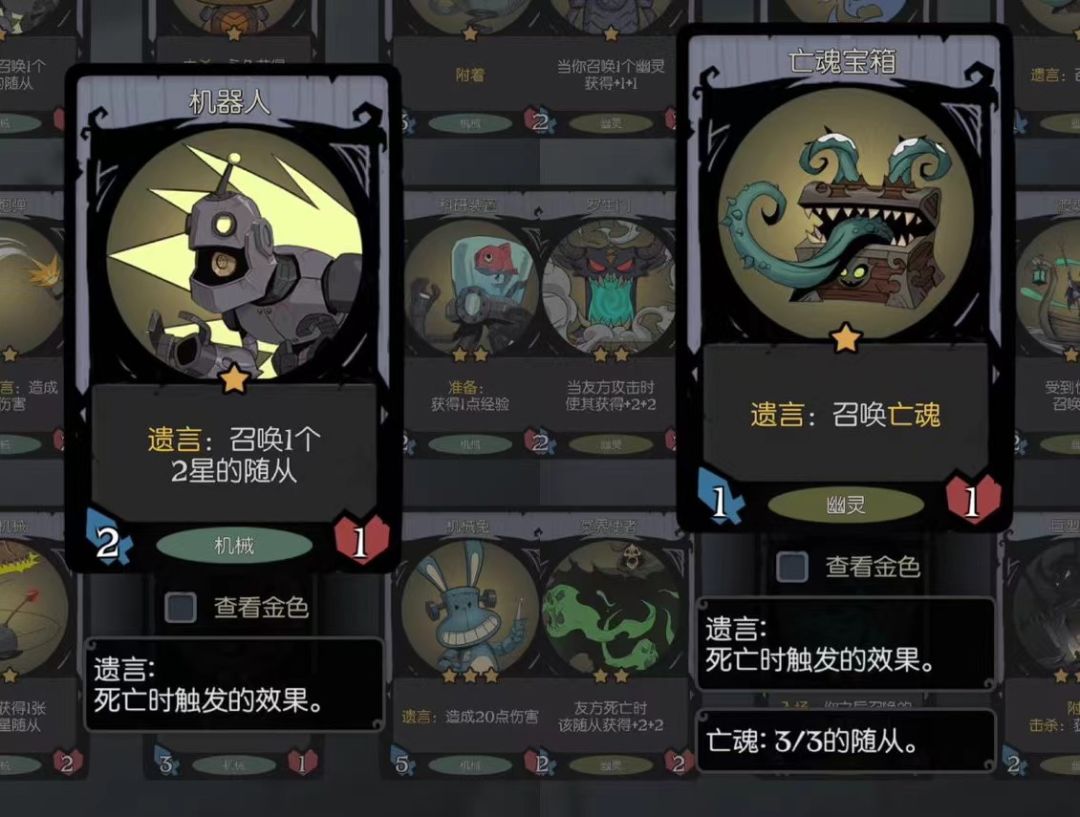 1⭐️卡牌:【机械阵营】机器人(T1)、【幽灵阵营】亡魂宝箱(T1)