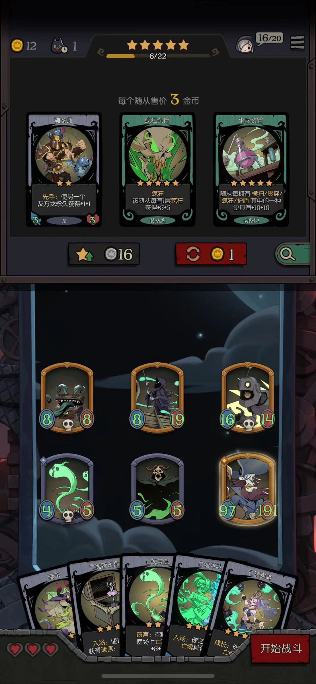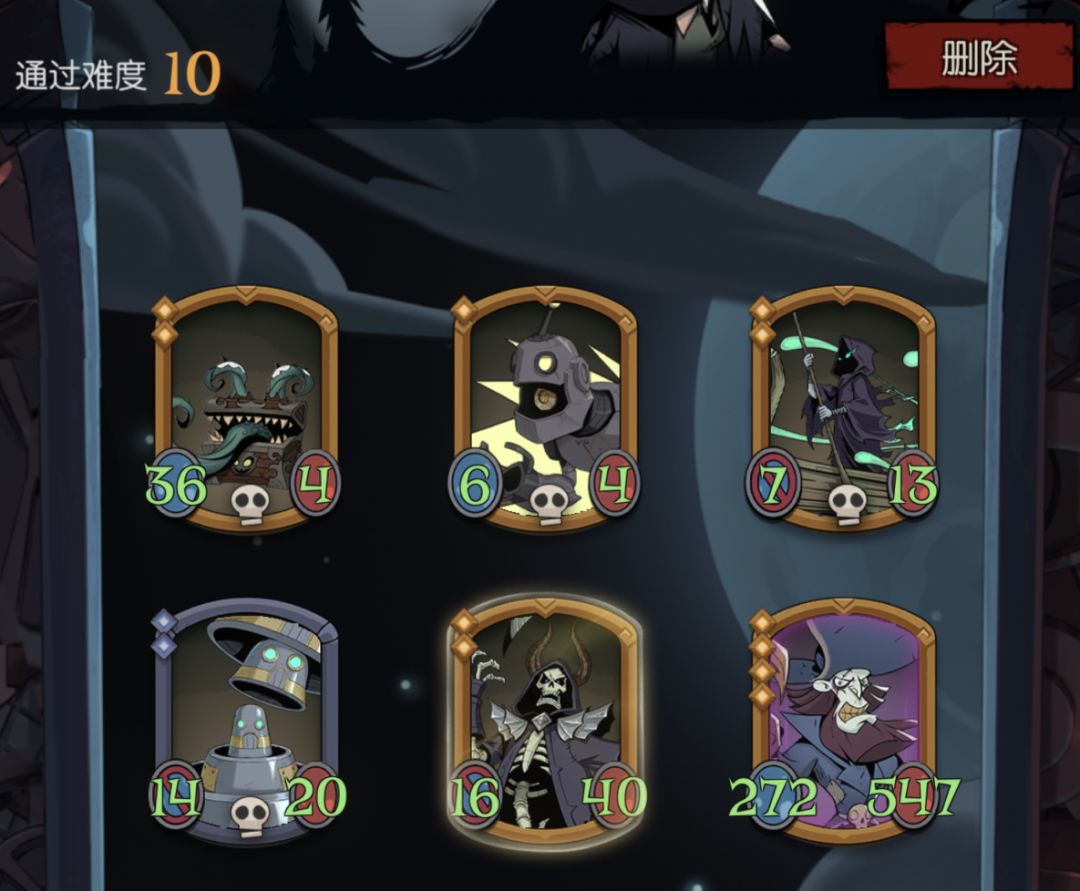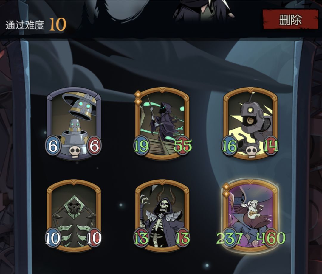 第17关:刷出来个亡魂的死神,果断把冥界使者卖了,把入场卡全用了,再换上核心牌:亡魂的死神。