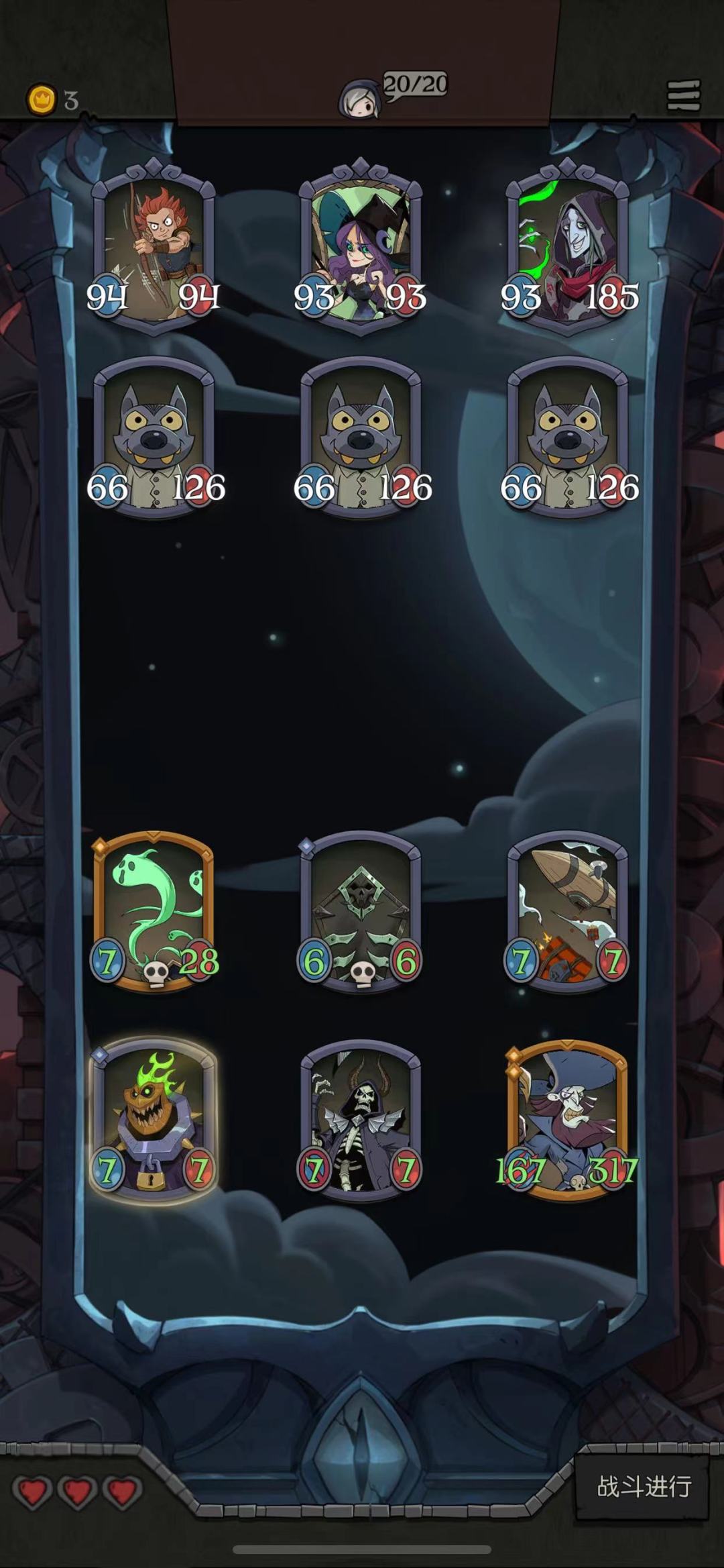 还是老样子,能不花钱就不花钱,能攒着就攒着,看一下下一关的怪物是什么,如果实在抗不过来几次S/L试一试改变一些阵容,要是还过不去,可以考虑添置一些上面所说的过渡卡牌、入场卡牌、可选卡牌等。