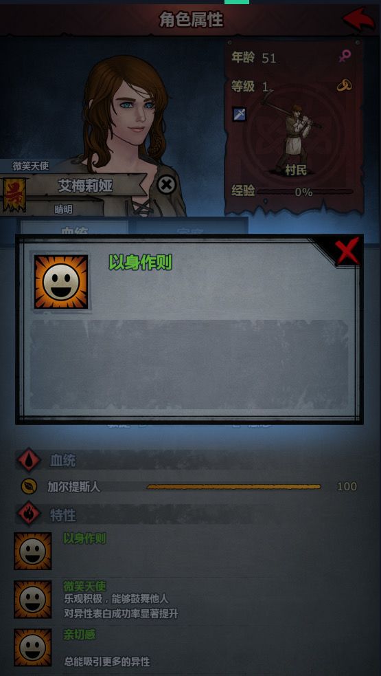 1.开局主角推荐选平民是为了那个微笑天使的特性还有以身作则 ,以身作则的介绍,是一个白板,表面上没什么用。