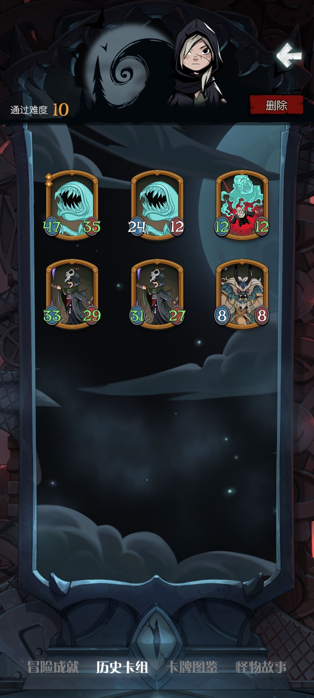 思路:其实不算特别整活的玩法,这四张牌先手连动,打出极多次(懒得算)5点aoe,演示教科书般的亵渎。