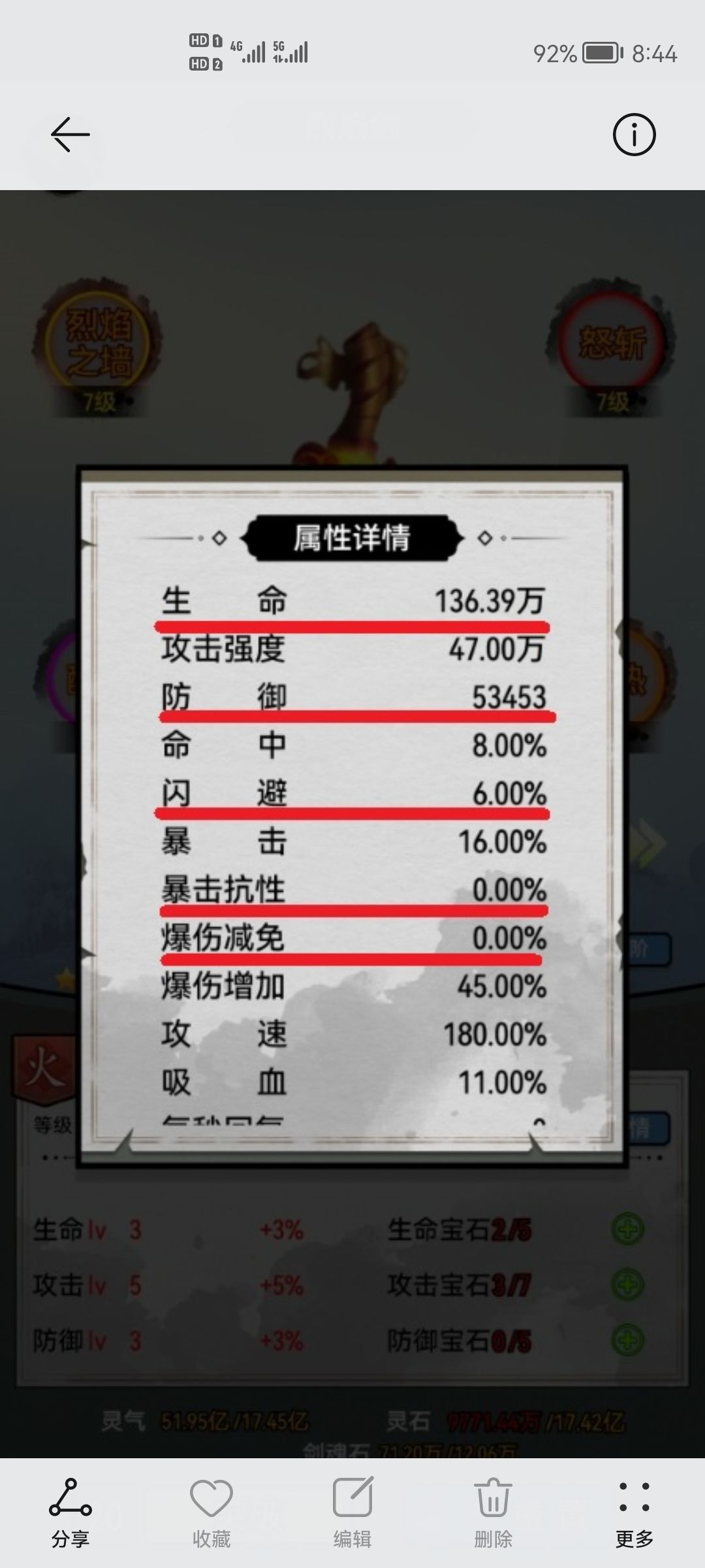 5》爆伤减免:减少人物被暴击后的伤害值。