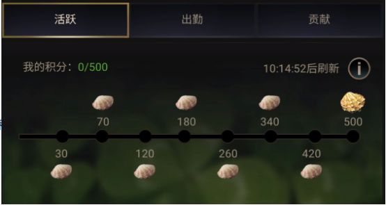 每日完成指定任务即可获取积分,集结、狩猎野外生物、高级孵化可快速获取大量积分,积分达到一定值即可获得相应奖励,累计积分越高奖励越丰富。