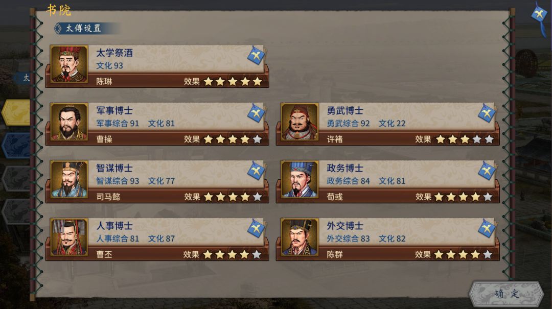 PS:书院里面安排的武将只能是首都城市的武将和但不受出征的限制。