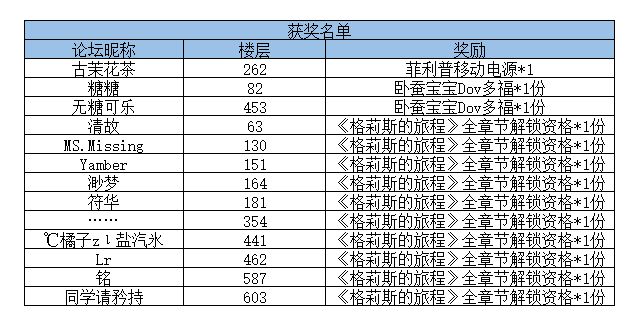 最后的最后,格莉斯当然不会忘记各位玩家,在这个值得庆祝和期待的日子到来之前,我们特别推出了盖楼抽奖活动,分享你对《格莉斯的旅程》上线的祝福,就有机会获得菲利普移动电源和超萌的卧蚕宝宝Dov多福!非常期待与大家的金秋艺术冒险解谜之旅,就让我们游戏里再会吧!