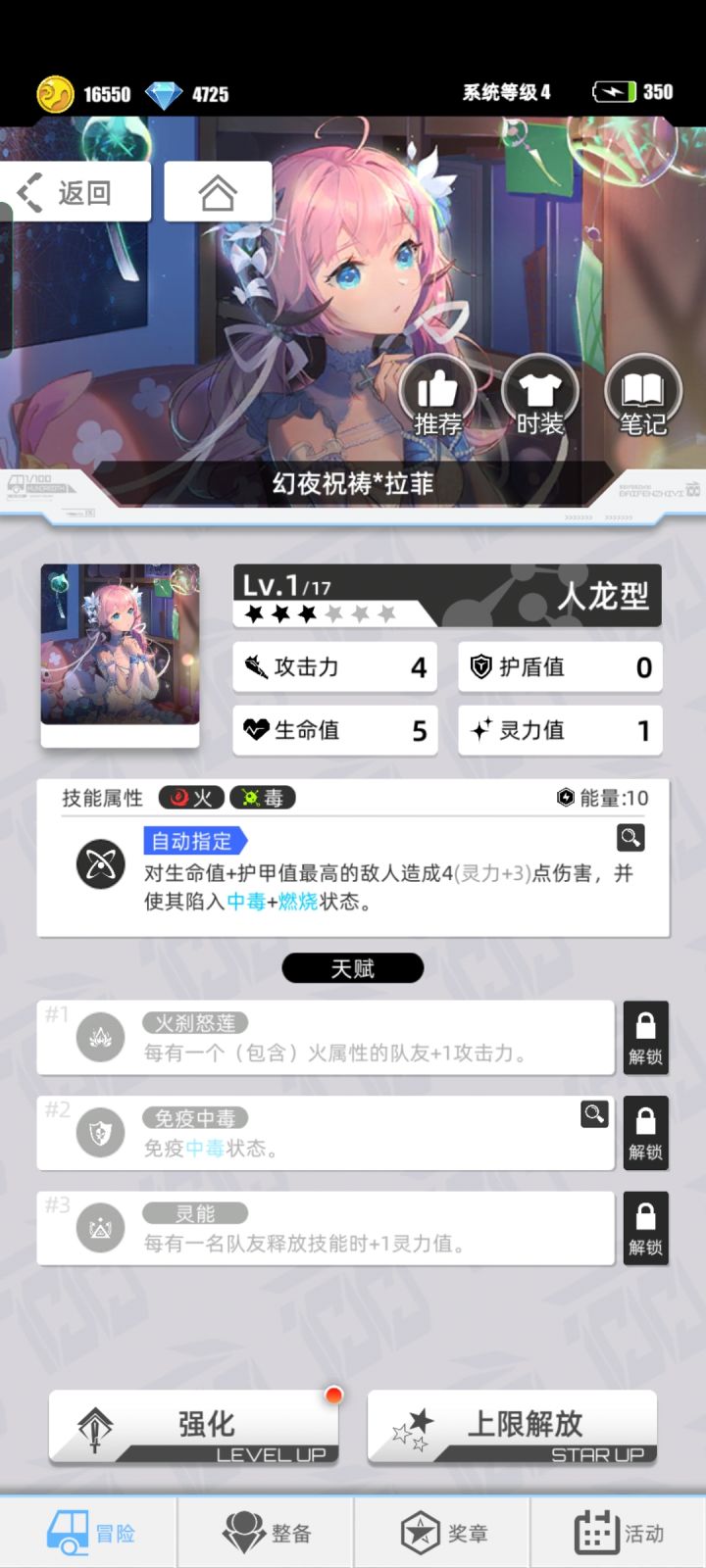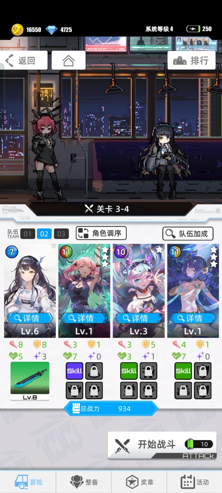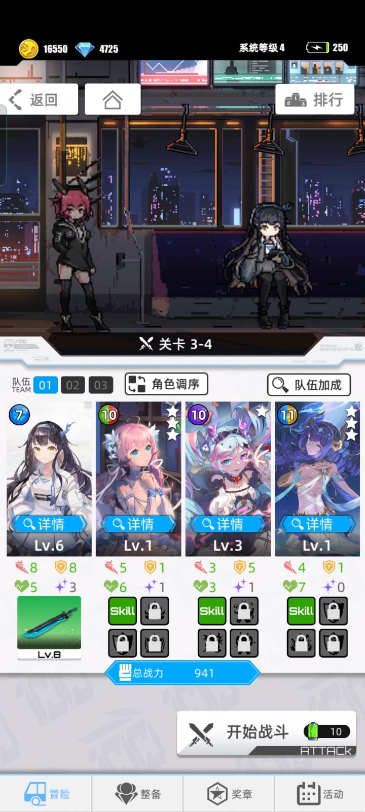 1号位:主角卡(主要输出卡,选主角卡的原因是TA装备武器之后,攻击最高,武器可以随便,我这里选了水刀,为了杀对面尾排用的。PS:后期秒不掉对面尾排,所以也没啥卵用了。。。)