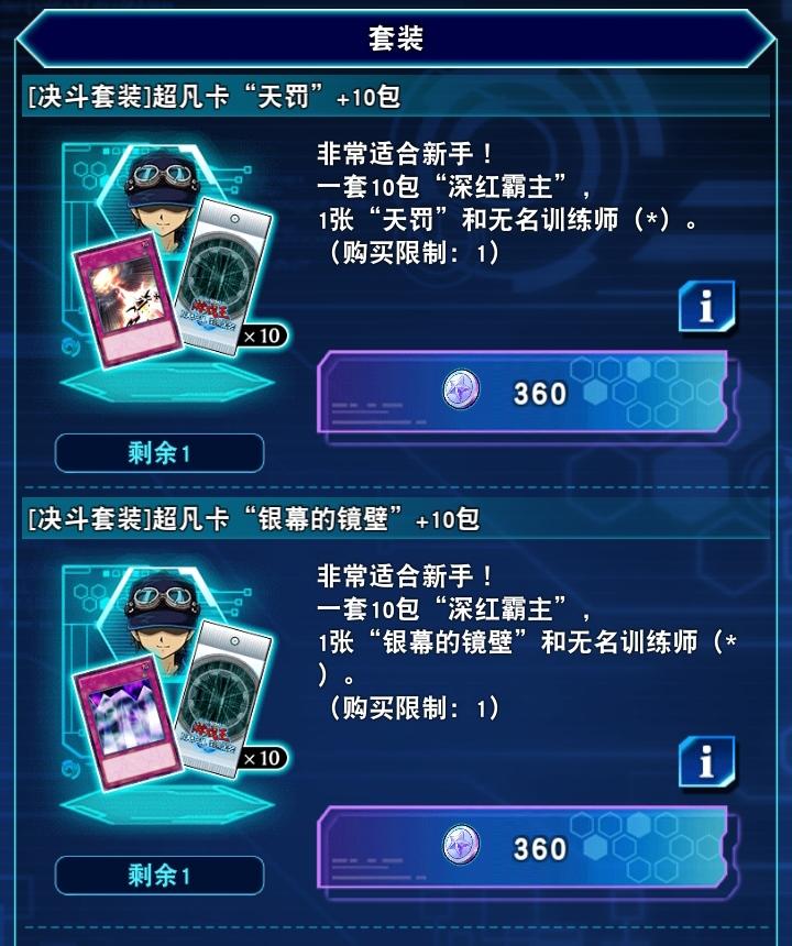 套装:天罚、镜壁是第2弹大包的卡。基本不会抽第2轮。如果你认为镜壁或者天罚的价值有12rmb,可以用决斗币换。10包卡是最新卡盒,以后出新卡盒就会更新。
