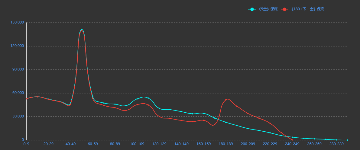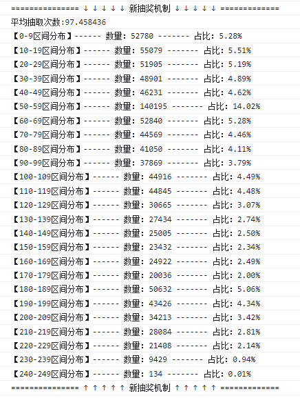② 在抽取240次以下情况时旧机制均占优势,只有240+非酋区新机制才占优势,但240+的数量太少了。