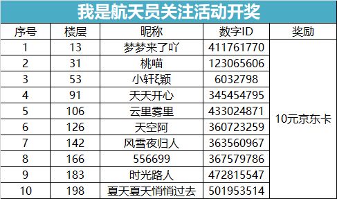 随机抽取十位正确参与的航天员送出每人10元京东卡福利