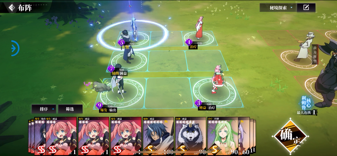 不过相较于其他卡牌养成回合制的漫改来说,《转生史莱姆》的玩法十分成熟,其回合制并不是把高星人物放到场上挂机看戏就行。在战斗中,除了各个角色技能和BUFF的配合之外,还有着连携系统的存在。如何让角色打出更多的连携数、让角色的连携能够多次触发,给《转生史莱姆》加上了策略属性。这就要求玩家在战斗开始之前就对角色技能有十足了解,并且为了连携也得考虑角色站位问题。
