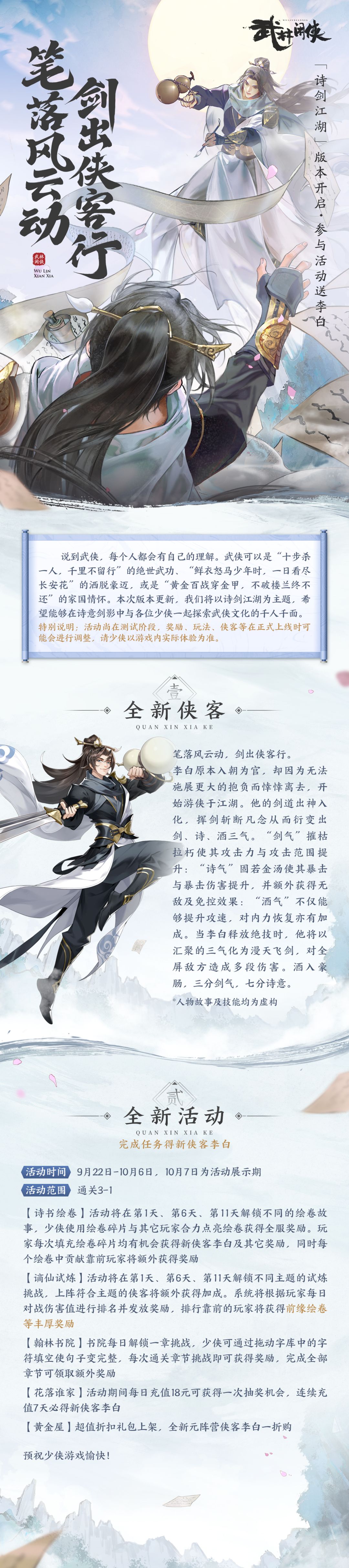 【版本前瞻】诗剑江湖版本开启!诗仙李白笔落风云动,剑出侠客行