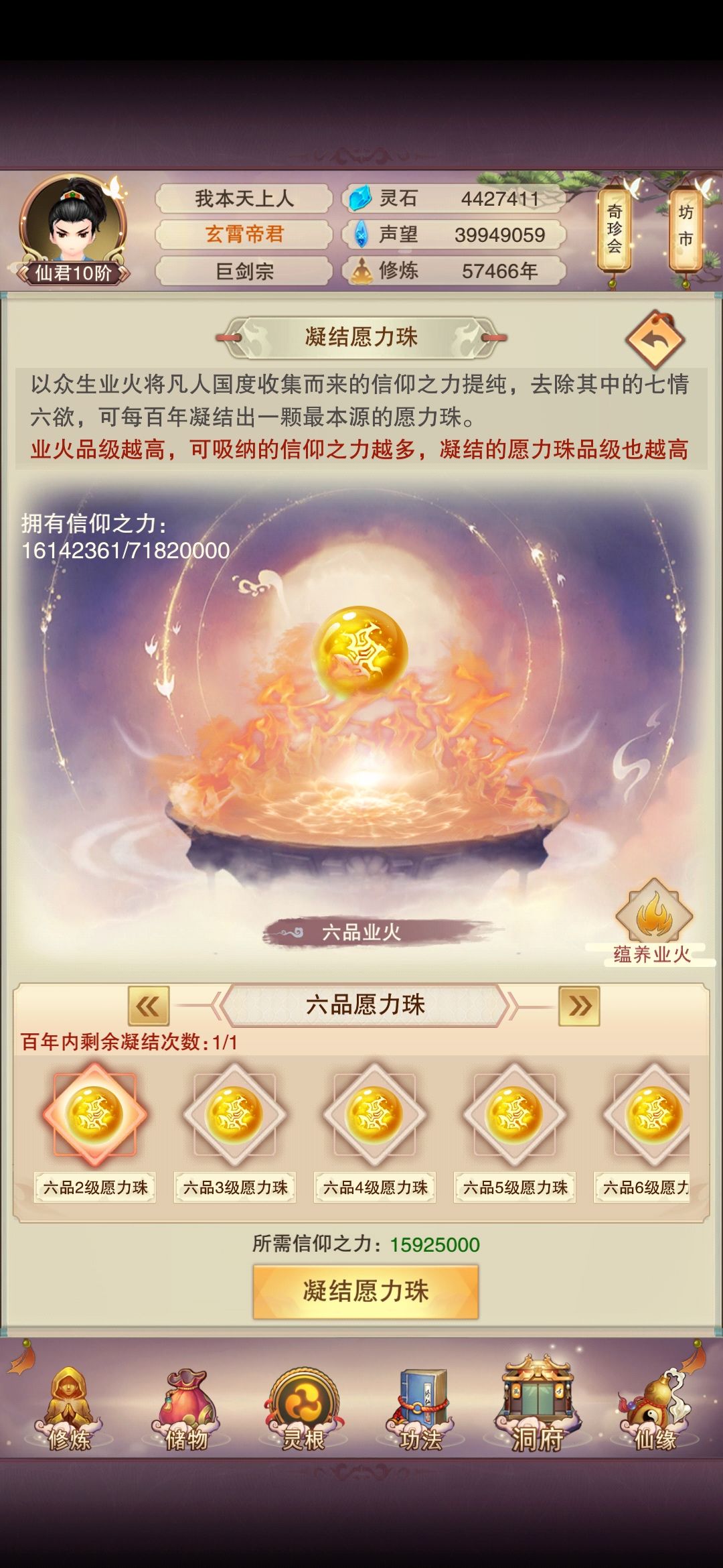 下一个目标63000年准帝(估计神识会更缺,愿力得多练神元丹了)