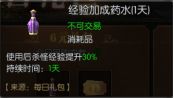 4. 前期抢经验一定要买经验加成药水,越早买越好。这个药水在每日礼包里出现,只需要6元即可获得一整天的加成效果,同时还会有获得一整天的高效打金卡,是非常划算的。