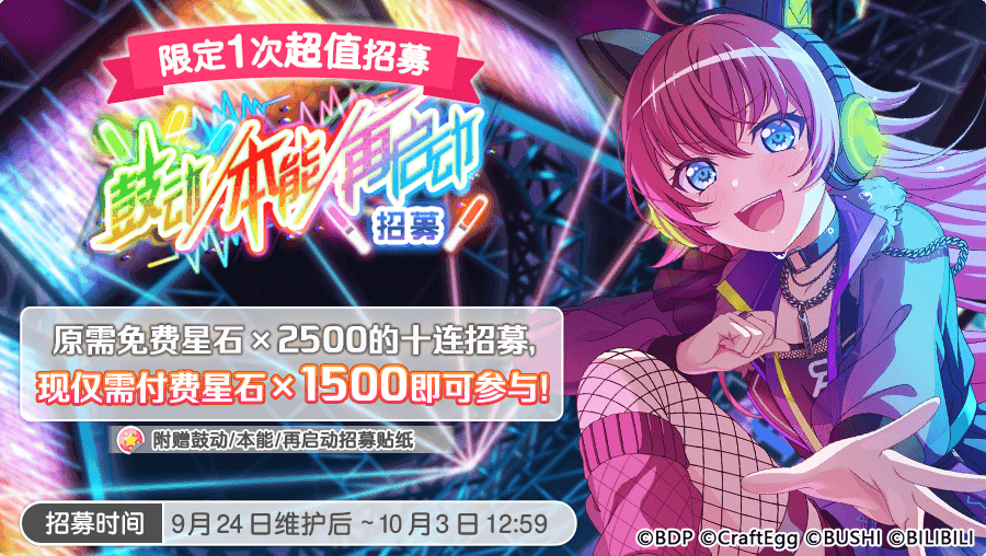 本招募附赠「鼓动/本能/再启动招募贴纸」!
