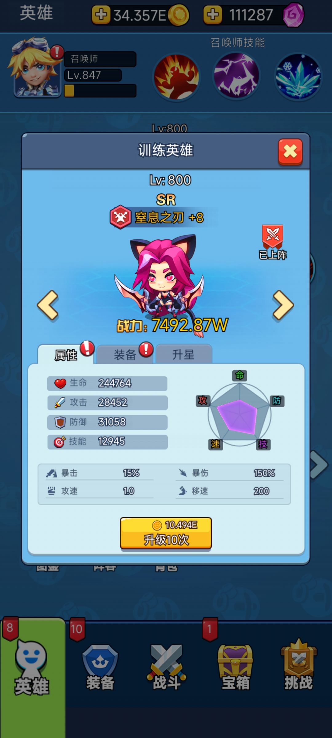 新手刚开始玩,可以不用一直抽卡,上来看广告送的猴子,在配4个战士,羁绊拉满,5战士开局,可以平推到500,不用想着一直开SSR,橙卡,和紫卡满星都很强,推荐新手开局,战争女神,大招是加盾,用武器大师,技能有眩晕,有无敌,尽量开局用技能加眩晕的,打boss非常轻松,技能的话,带狂暴,冰冻,闪电基本上万金油,主升2个角色的装备就可以了。新游戏刚开,问题很多,总体来说还是可以的。有不会的可以来问我,也可以加官方群