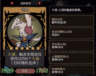 总结:我今天来就干三件事,狠活,狠活,还是XXX的狠活。这流派主要开发出来是完成成就的,比如“开局前成长到血量超过500”这种,正常流派的成长是没办法叠这么快的数值的,只有入场流可以一波肥,是挑战全成就的良好途径。