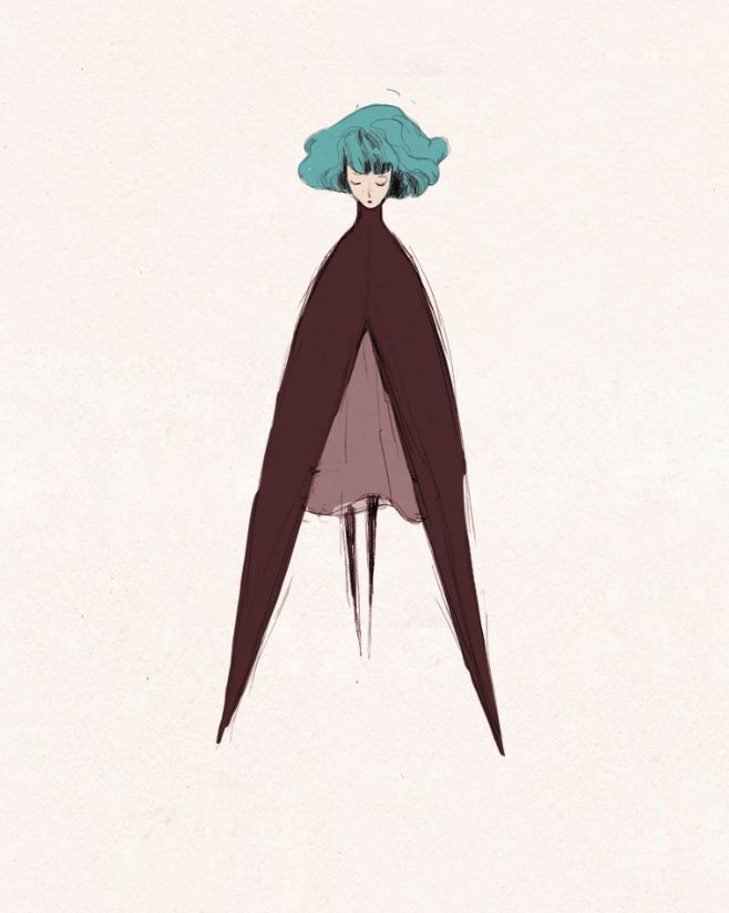 素描线稿描绘出一个深色斗篷下的短发女孩儿,像白纸一样纯净、冷清,甚至带有一点孤独,宽大的斗篷遮住了格莉斯的上半身,只露出了纤细的小腿,面对这个广阔的世界,我们应该迈向何方?