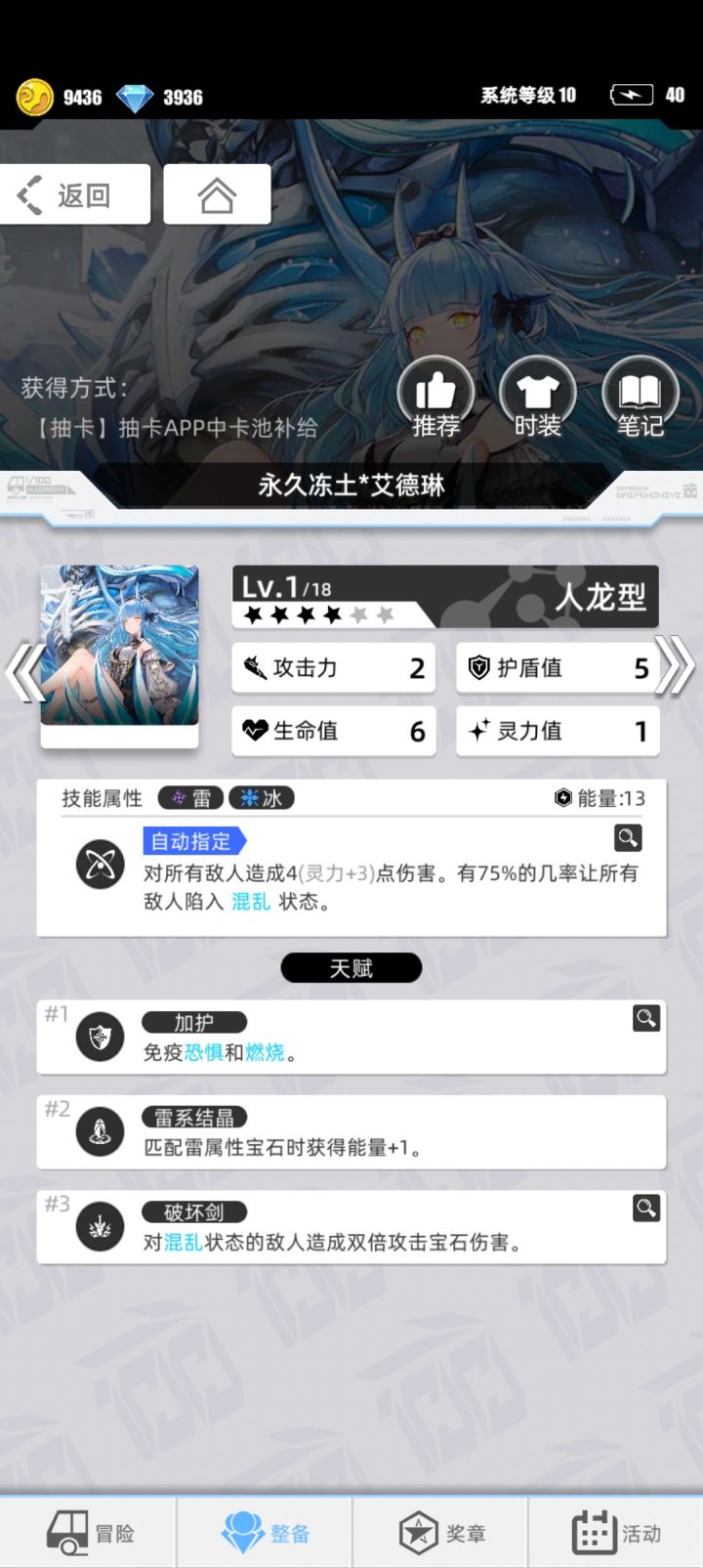 属性方面为比较万能的雷系和冰系