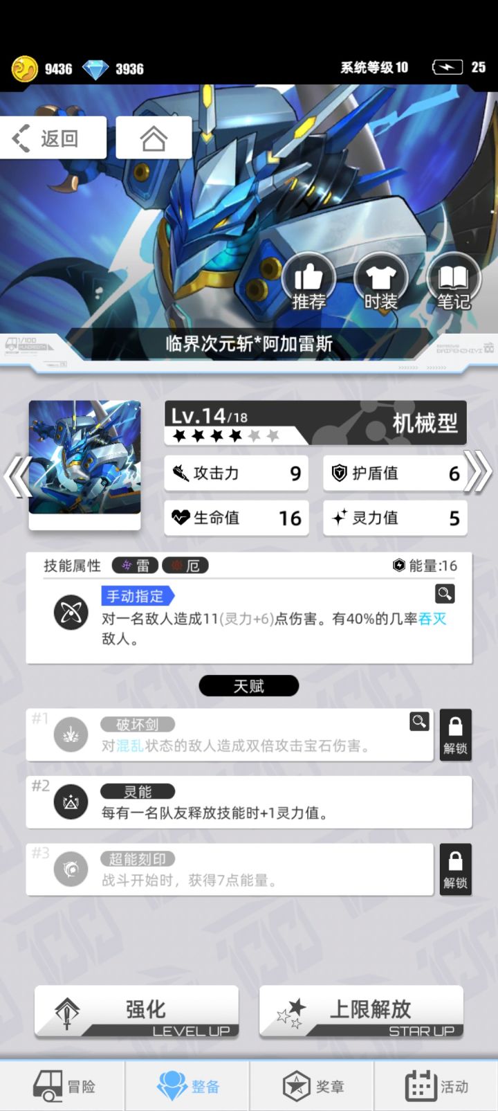 第一张:拥有稀有型之一机械型,雷厄属性,称号“临界次元斩”的阿加雷斯