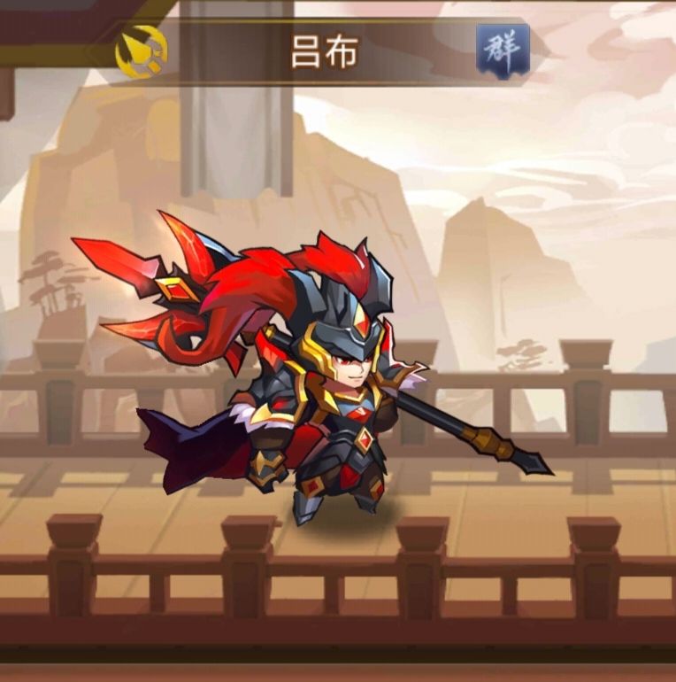 衣装上看,全身玄色重甲,玄(即黑色)色本身在很多动漫中就是强大、高贵角色的专属色,而全身重甲,更把吕布强大的力量体格表现出来,而与黑色搭配的红色,本身这两张颜色搭配就是一些boss的专属色,而红色又有英雄、勇者的意味在其中,与黑色搭配,则有战斗、杀戮之意,而头上的紫金冠基本上已经成了吕布的特征(对,就是你们说的双马尾),但它的作用其实又不止是装帅。吕布称飞将,本身其实是骑将,游戏中吕布“马”的元素已经被去除,而要彰显飞将之感,其实紫金冠也有很大一部分作用,随风飘摇,那种随意感,并不是所有人都有的,只有绝对的强者,才能随心所欲。