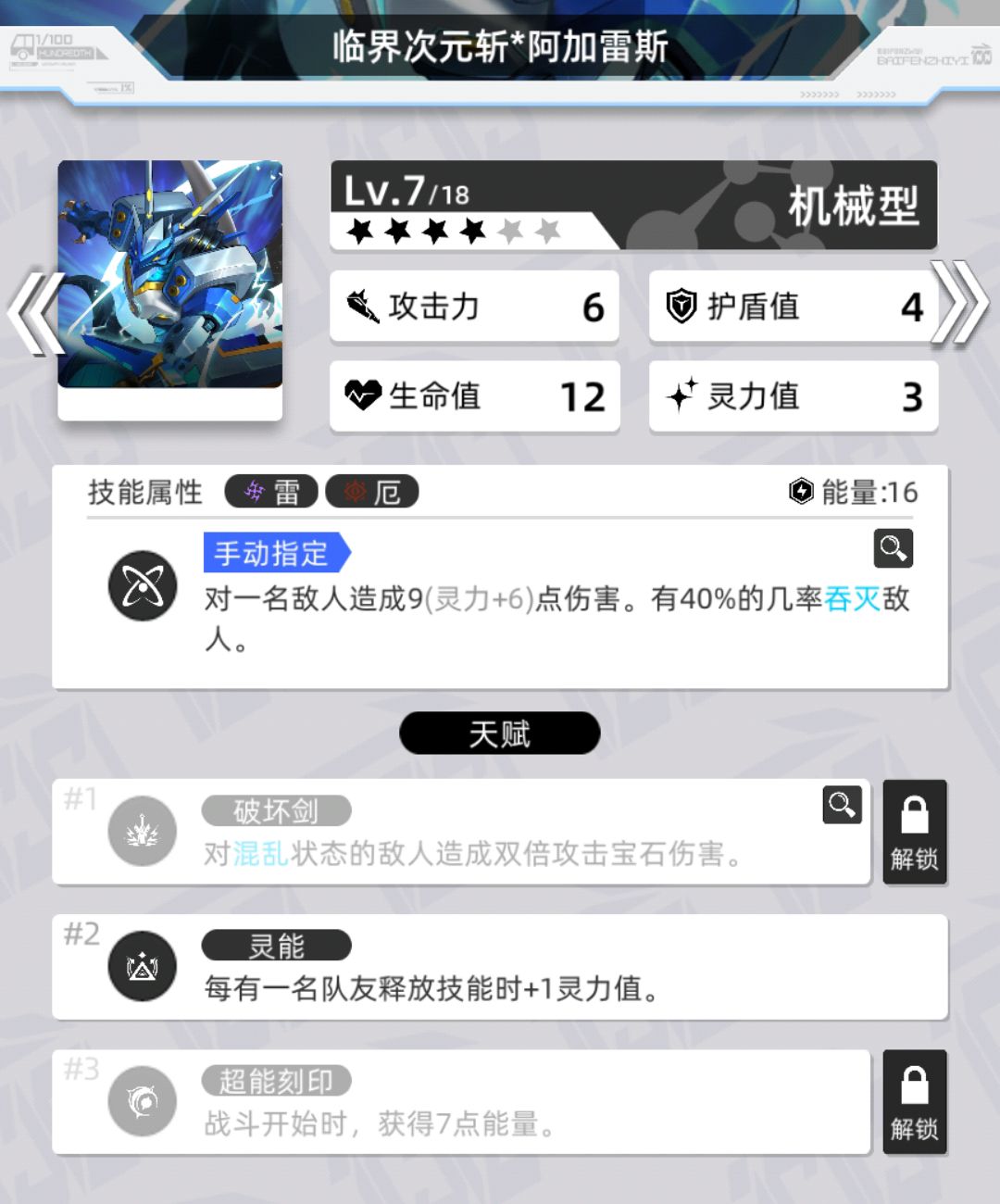 注:由于高达需要雷能量,及其推荐白希,10%恐惧万一就中了呢