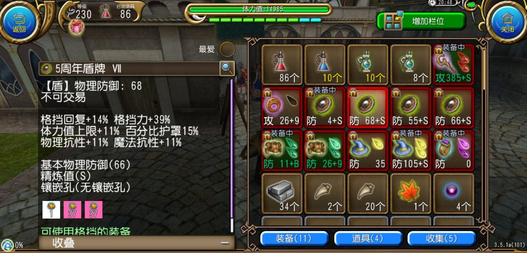 让你更硬的盾,因为我时装是全异抗配置,所以异抗只点了235,剩下的点耐力,所以5/6周年盾,铁女帝,甜纳许,hp突破这种加hp%的词条收益不错。