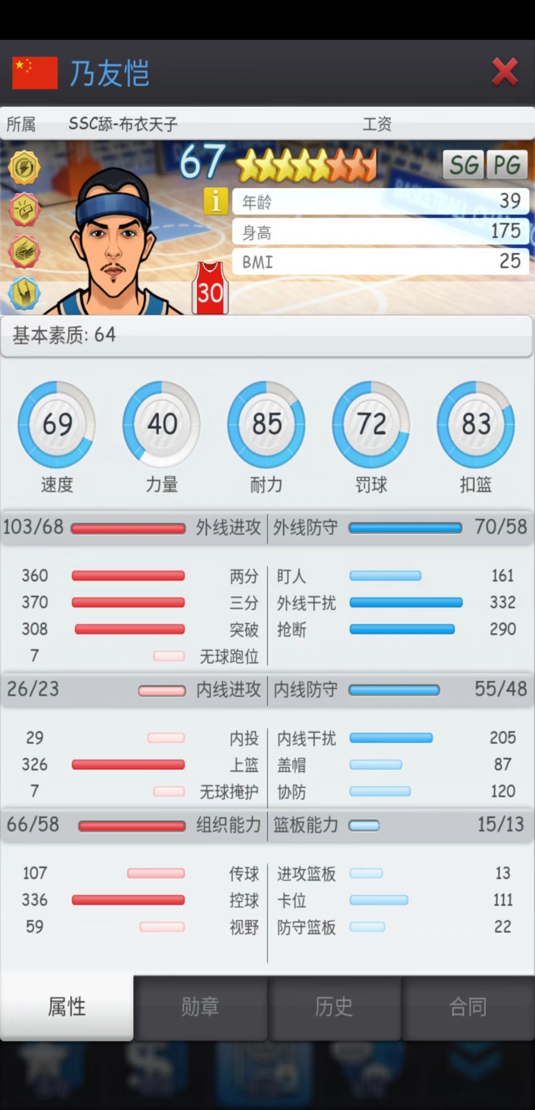5.上篮最好能达到当前联赛等级上限;有条件的话练适量的抢断;