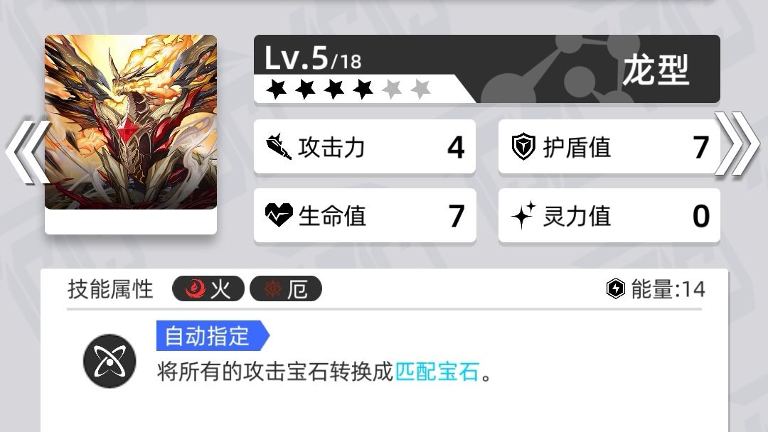 在阵容思路上,首先是绚舞七七,转攻宝石还有额外回合,附带的叠甲效果可以避免断连一次后直接被抬走。然后火龙可以把攻宝石直接转成匹配宝石。这两张卡一搭配就是一段狂轰乱炸,但是没有什么伤害,但是可以爆掉卡住的元素宝石直接给别的卡充能。
