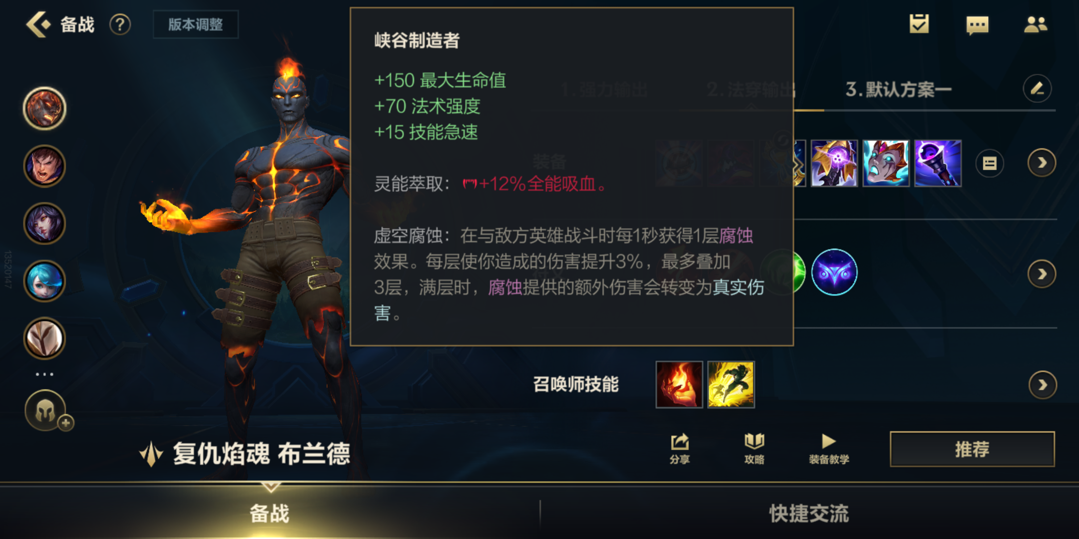 面具在3.4版本中迎来了更新,被动不再对减速目标造成额外伤害,也不会随着减速延长灼烧时间,单纯的变为了百分比魔法伤害,玩过端游的大概看出来了,这直接变恶魔之拥,虽然没了减速增伤,但是新的百分比伤害可以跟峡谷制造者被动联动,灼烧直接变真实伤害!从此告别刮痧,开始火化。