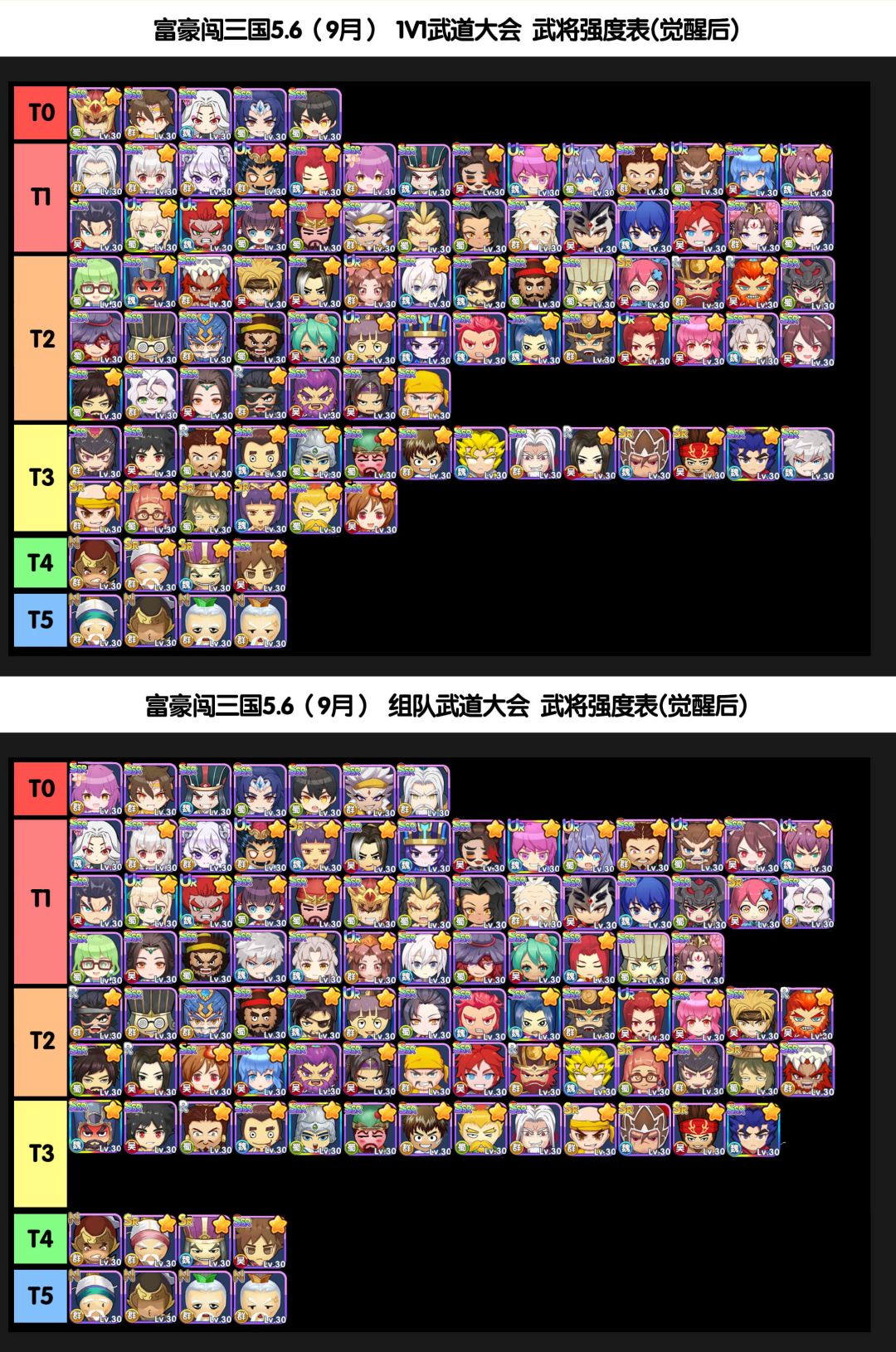 【节奏榜】富豪闯三国5.6版本,9月武道会角色强度表(觉醒后)仅供参考