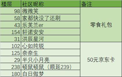 下面兔兔来公布中奖名单啦: