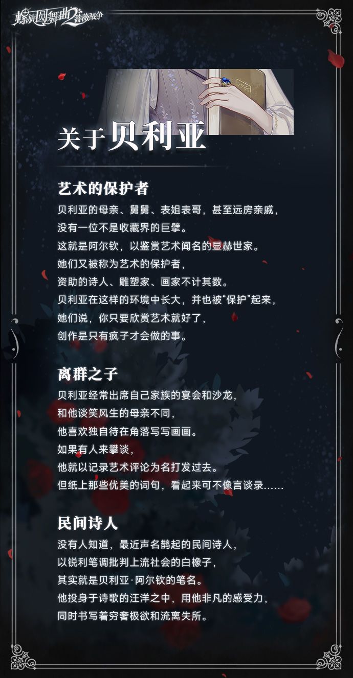 贝利亚是哈伦娜尔·阿尔钦女爵的独子,理所当然地,他会继承家族历代收藏的无数艺术珍宝,成为毋庸置疑的权威。