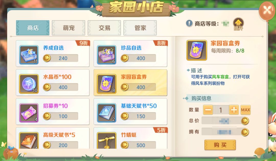 8、对商店萌宠盲盒和小小龙的价格进行了打折出售,调整了其他商品的定价。
