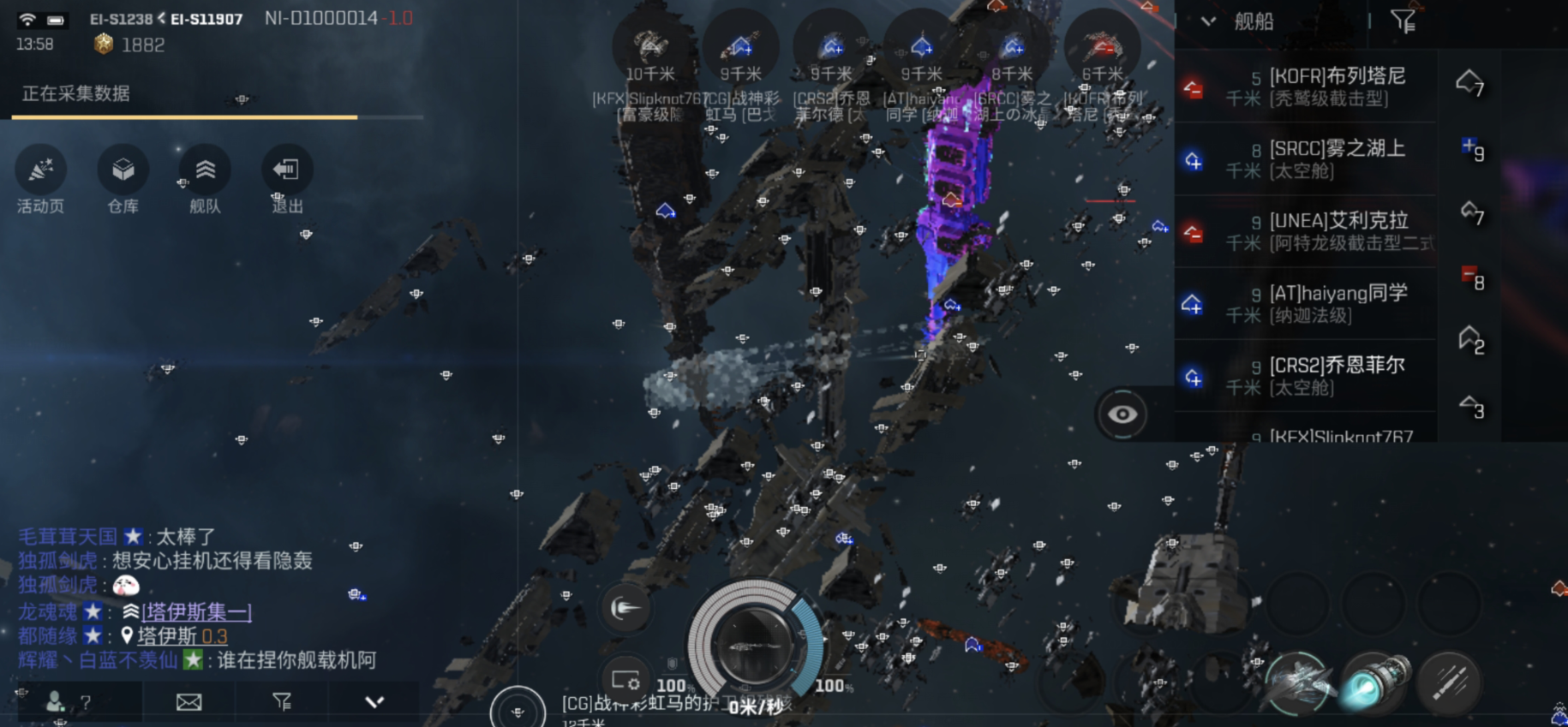 一艘弱小的舰船开着隐身装置夹在舰船和船骸之中,看得出来他已经在此停留了很久,使用隐匿装置这也不失为一种战术,只要能够达成目标,过程和手段怎样都好。