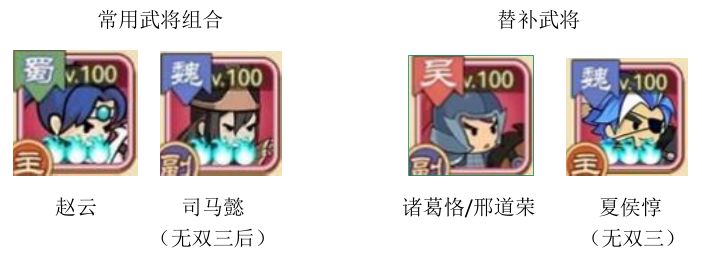 这种情况不妨把司马丢骑兵带虎豹,层数能因为蔡文姬叠更多层,虽然骑兵血量少而伤害变低但更好的保证了步兵的生存。此时步兵带诸葛恪:最肉蓝将,步兵出手时保证拥有最高免伤50%(一般考虑带邢道荣是因为邢道荣是群雄更好凑远征的限制条件,就主线而言最肉的为诸葛恪)。